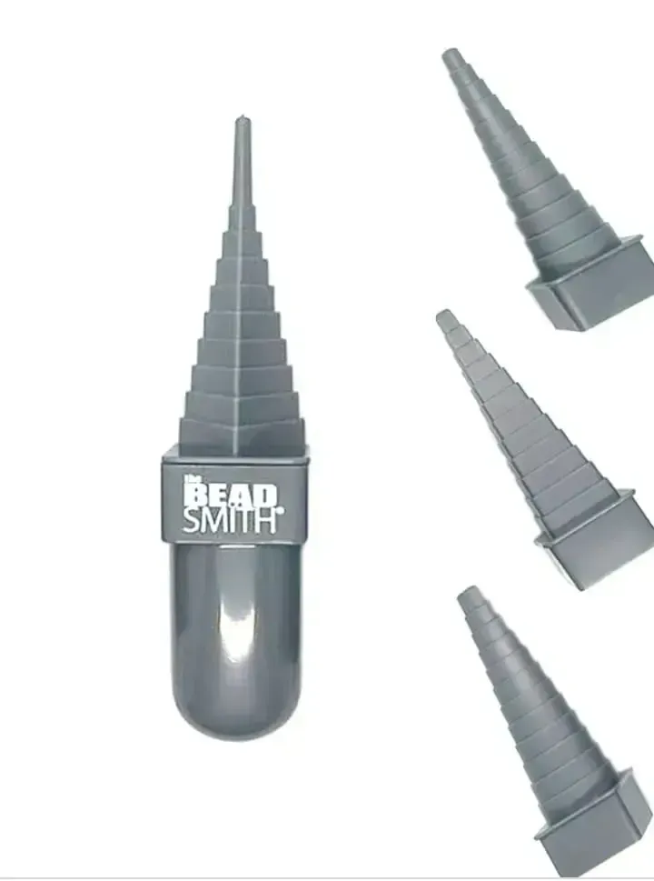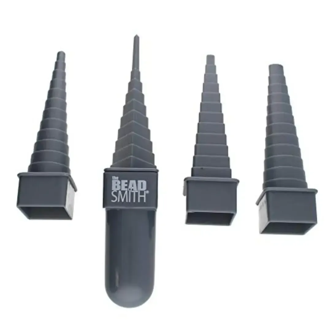 Herramienta versátil de plástico que tiene 4 conos de diferentes formas: redonda, triangular, cuadrada y ovalada. Tiene un mango ensartador removible para colocarlo en el cono que se vaya a utilizar.