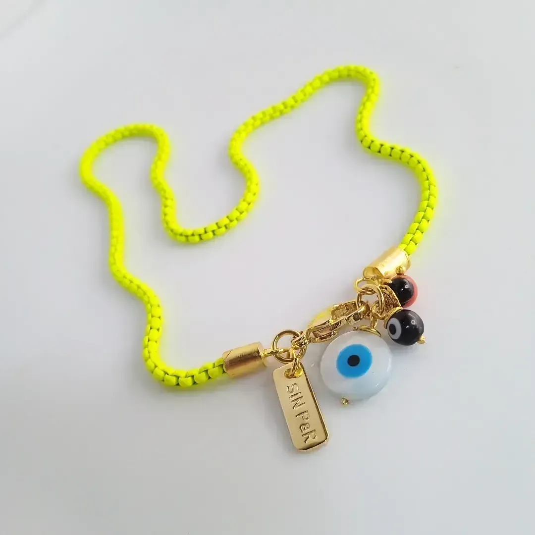 Collar corto Cábala con cadena cierre verde fosforescente. Trancadero mini Tugas y dijes