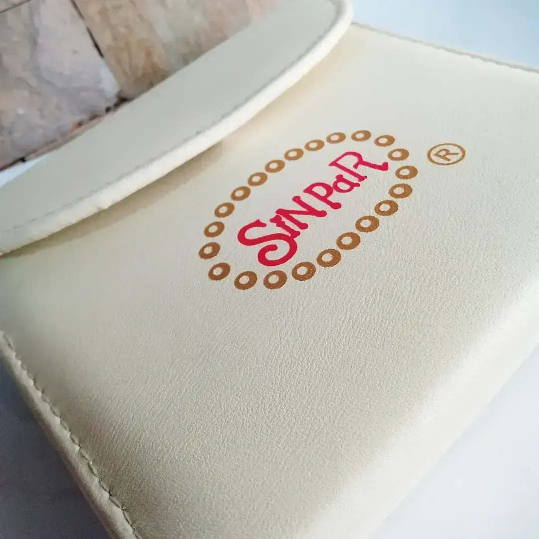 Estuche de bipiel beis sintético vacío de la marca Sin Par 15 x 14 cm