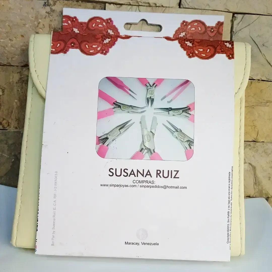 Estuche de bipiel beis sintético vacío de la marca Sin Par 15 x 14 cm, con cierre imantado capacidad para seis pinzas y dos herramientas laterales alargadas