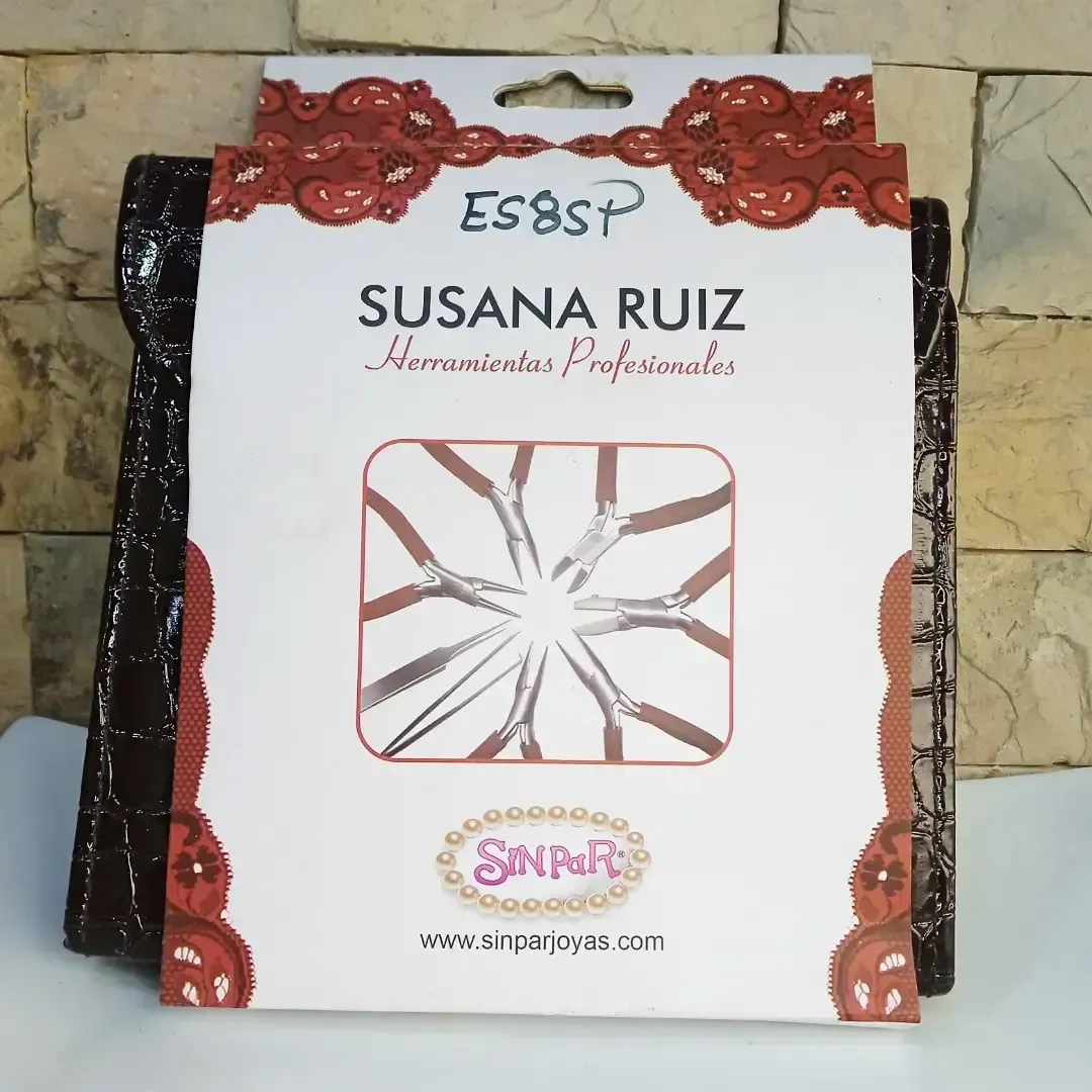 Estuche de bipiel marrón sintético vacío de la marca Sin Par 15 x 14 cm, con cierre imantado capacidad para seis pinzas y dos herramientas laterales alargadas